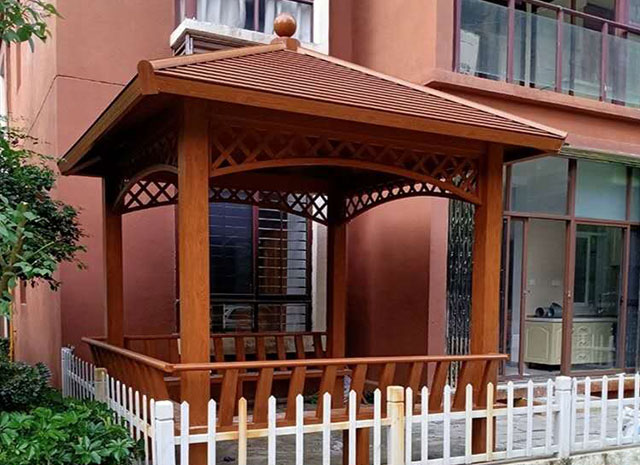 近些年來(lái),鋁制涼亭受到了很多人的青睞,因?yàn)殇X制涼亭材質(zhì)硬不易老化,后期基本不用維護(hù),其外觀經(jīng)過(guò)木紋處理轉(zhuǎn)印后,質(zhì)地顏色都和木頭很相似,從遠(yuǎn)處更是看不出來(lái)區(qū)別,經(jīng)風(fēng)摧日曬也不易掉色、老化、干裂,而這些在木制涼亭中都無(wú)法避免。而且鋁制涼亭建造后牢固性也很好!