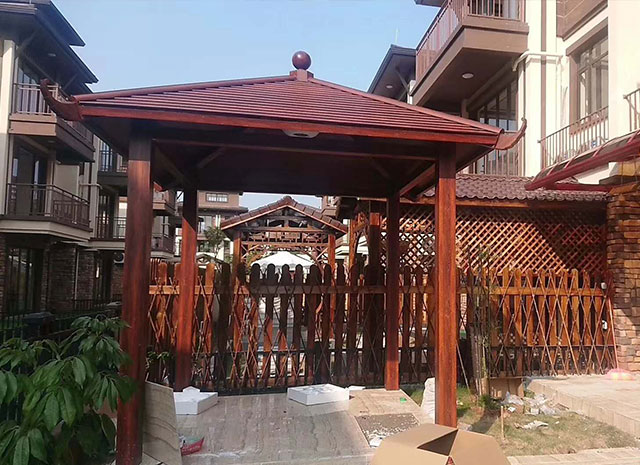 涼亭,傳統(tǒng)結(jié)構(gòu)單體建筑之一。因?yàn)樵煨洼p巧,選材不拘,布設(shè)靈活而被廣泛應(yīng)用在園林建筑之中。是人們憑借一定材料建造出來(lái)的,而材料的特性,也必然會(huì)對(duì)建筑的造型風(fēng)格產(chǎn)生影響。所以,涼亭的造型藝術(shù),也在一定程度上取決于所選用的材料。由于各種材料性能的差異,因此,不同材料建造的涼亭,就各自帶有非常顯著的不同特色。