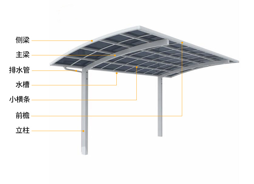鋁合金停車棚配件齊全,專用便捷安裝技術,不需要焊接,安全可靠,省時省力