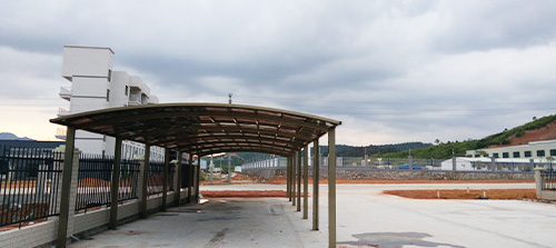 骨架材質:鈦鋁合金 頂棚材質:聚碳酸酯板 面積計算:按頂棚展開面 型材壁厚:1mm-4mm 板材厚度:2mm和3mm 尺寸:可定制 型材工藝:噴涂、電泳、轉印 框架顏色:白色、灰色、咖啡色、香檳色、木紋色 板材顏色:透明、茶色、淺灰色、深灰色、藍色 適用范圍:企業工廠、政府單位、別墅小區 款式選擇:單邊式車棚、合抱式車棚、斜拉式車棚、歐式S型車棚