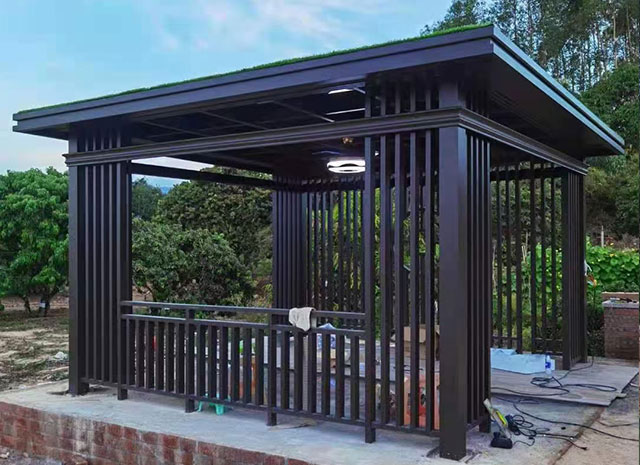 1、新中式鋁合金涼亭安裝簡單,施工便捷,不需要繁雜的施工工藝,節省安裝時間和費用。