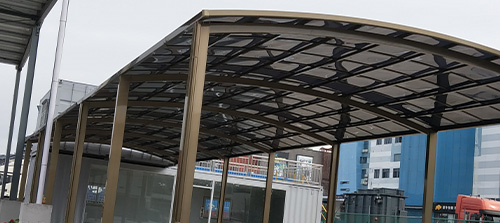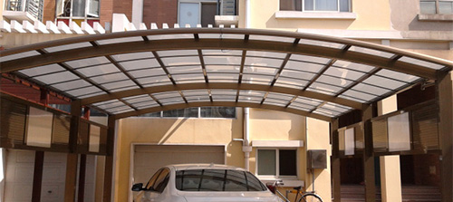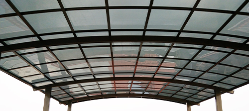 頂棚采用進口聚碳酸酯板,抗沖擊是玻璃的數(shù)百倍,有效防止高空墜物