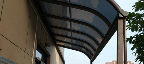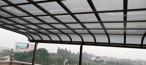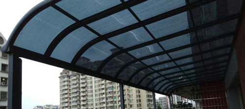 頂棚采用進口聚碳酸酯板,抗沖擊是玻璃的數百倍,有效防止高空墜物